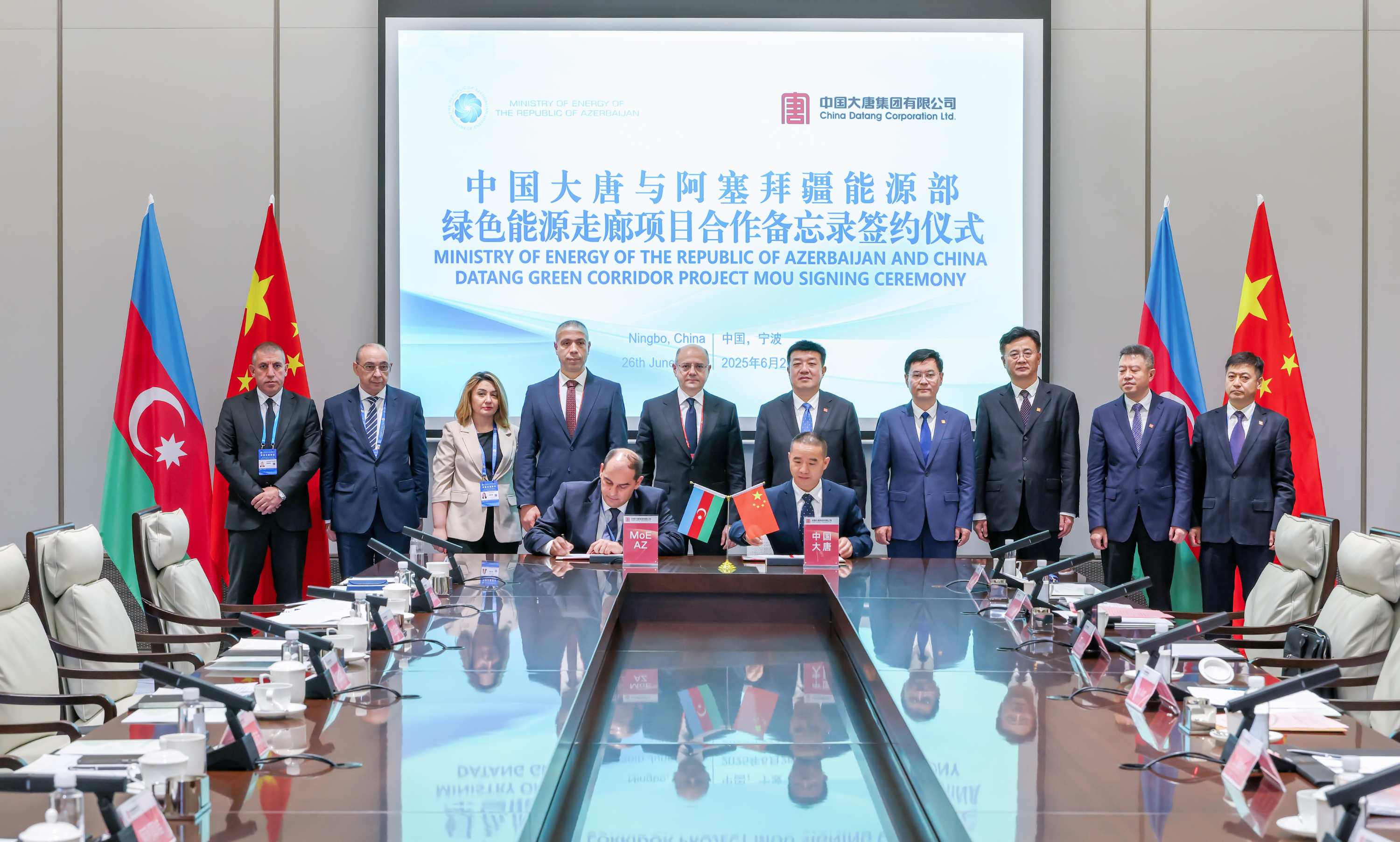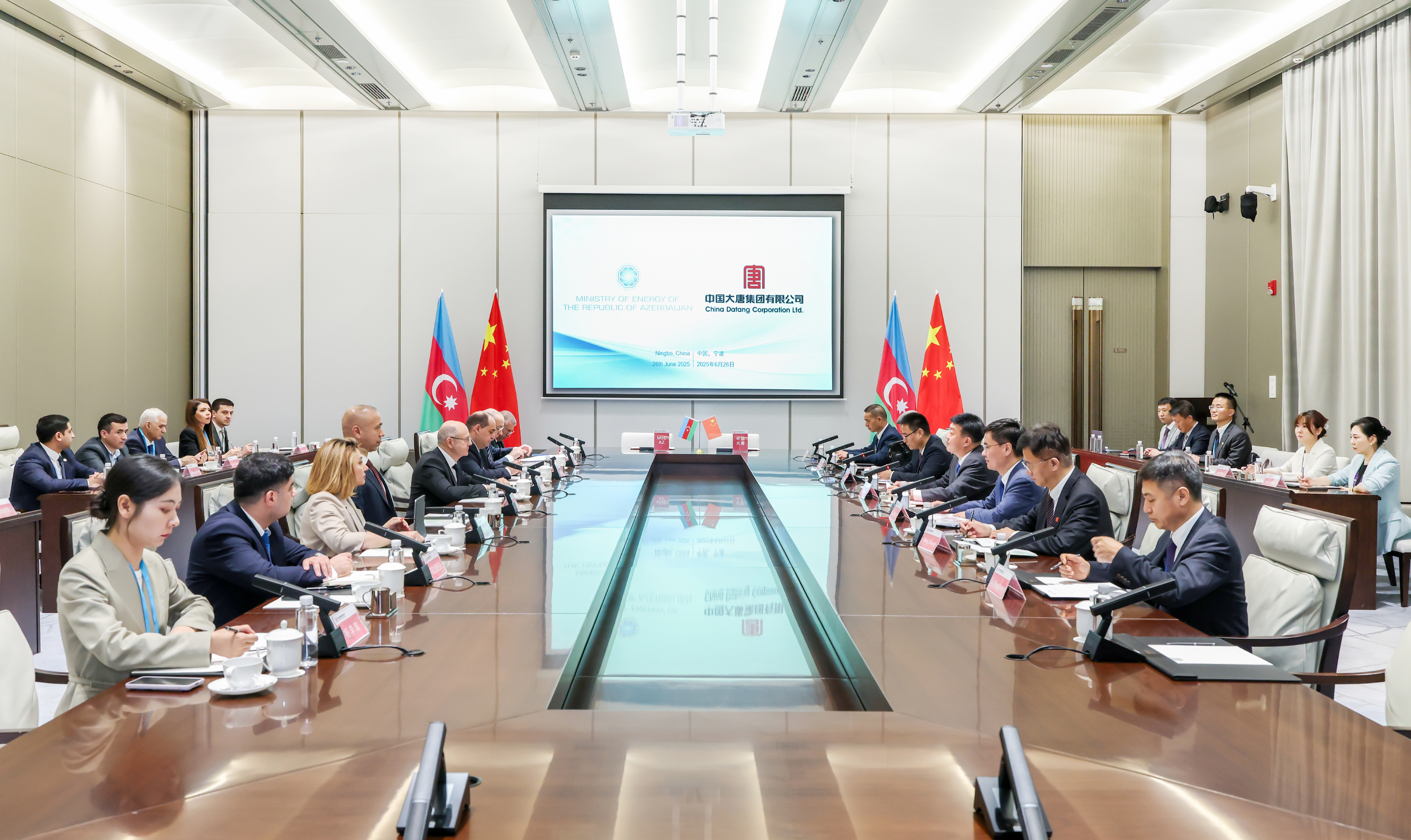 会谈后,阿塞拜疆能源部与中国大唐海外投资有限公司签署了有关绿色能源项目谅解合作备忘录,并举行了阿塞拜疆能源电力骨干培训开班式。