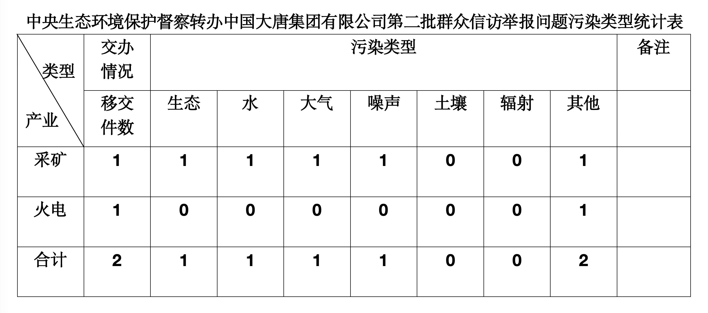 2025年6月4日,中央第七生态环境保护督察组向中国大唐集团有限公司移交第二批群众信访举报件,共计2件,来电举报和来信举报各1件,涉及生态问题1个、水问题1个、大气问题1个、噪声问题1个、其他问题2个。所有举报件办理工作已第一时间进入调查核实办理程序,办理情况将按照相关要求反馈督察组,并及时向社会公开。