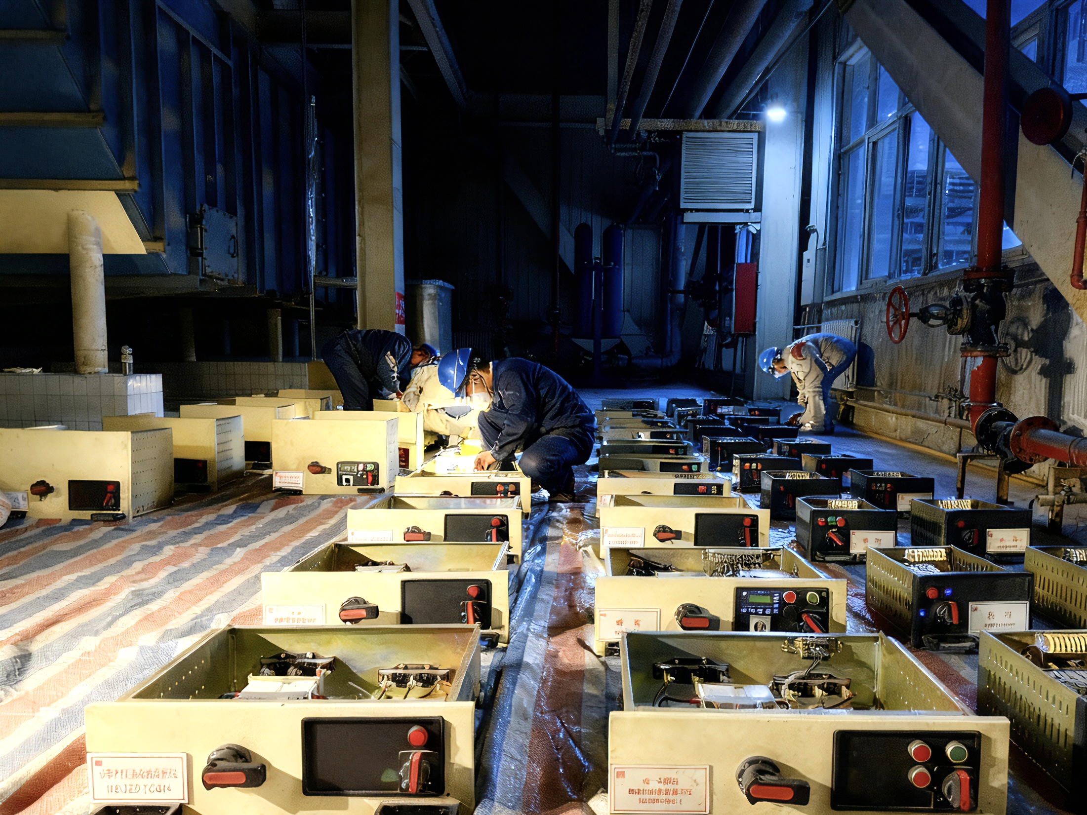 打开MCC柜门,接触器、继电器、断路器与密集的二次线路呈现眼前。检修人员手持工具与电筒,如外科医生般专注细致:紧固每一处端子,清除每一粒积灰,测试每一个元件。现场唯有工具轻响与沉稳的呼吸声,映衬着他们专注的身影。