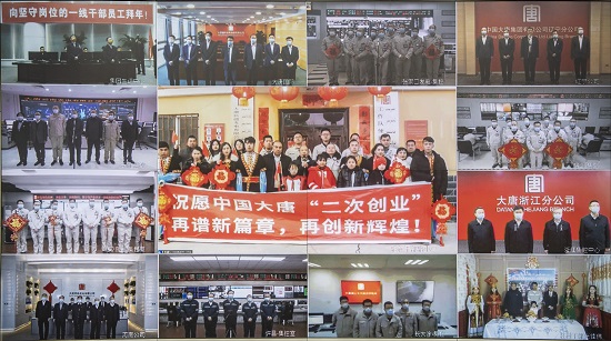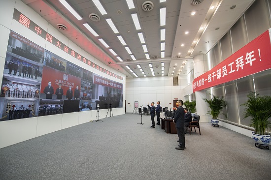 本网讯 1月31日农历除夕,在千家万户阖家团圆的重要时刻,中国大唐集团有限公司党组书记、董事长邹磊和党组成员、副总经理曲波代表集团公司党组亲切看望慰问总部值班人员,并通过视频连线的形式慰问春节期间坚守岗位的一线干部员工,向大家致以新春的问候与诚挚的祝福。