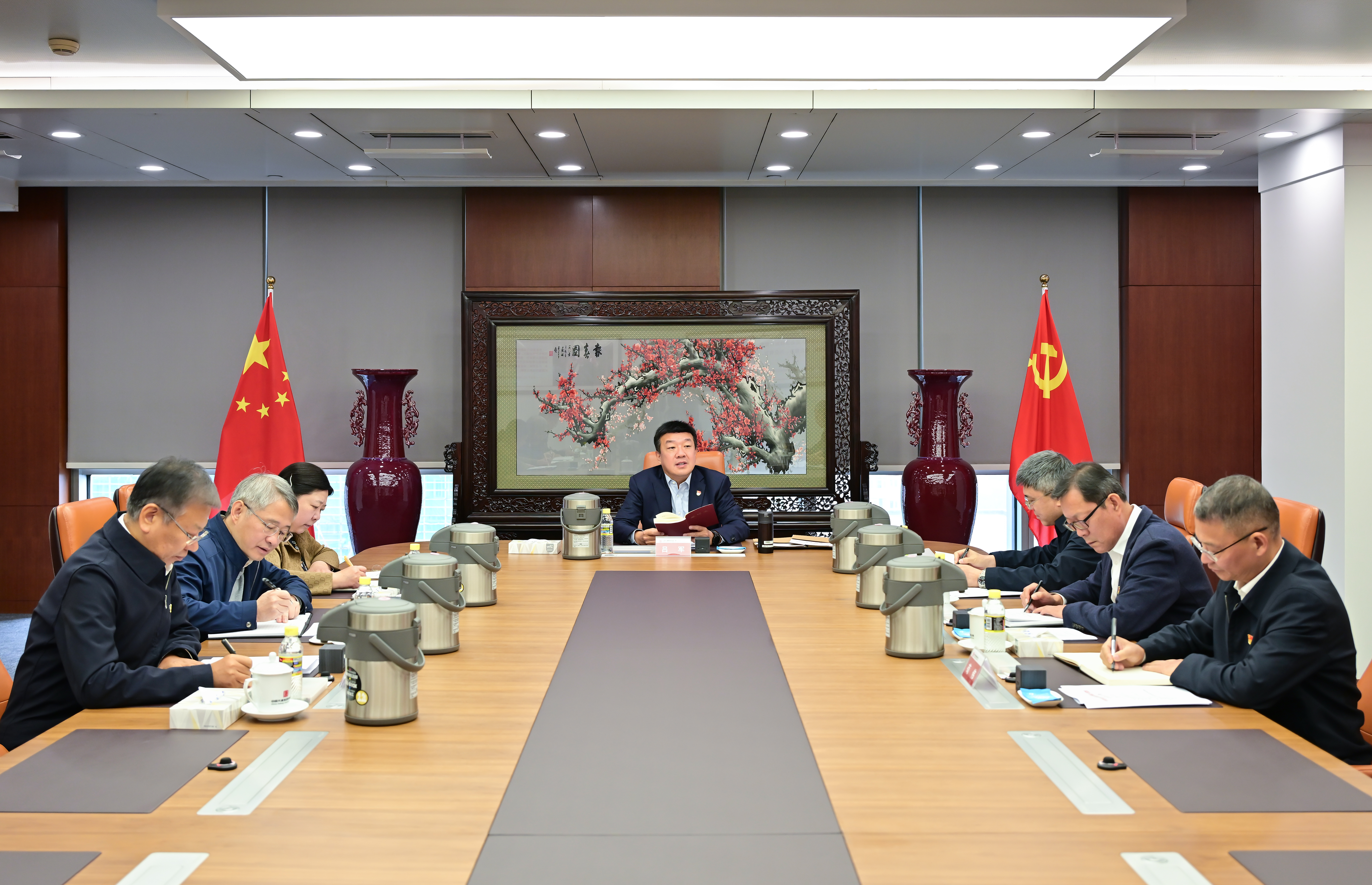 本网讯 10月24日,党的二十届四中全会胜利闭幕后,中国大唐集团有限公司党组书记、董事长吕军第一时间主持召开专题党组会议,传达学习习近平总书记所作的工作报告、《中国共产党第二十届中央委员会第四次全体会议公报》等,深刻领会党的二十届四中全会精神,研究学习宣传贯彻落实举措。集团公司领导李向良、王瑛、曲波、陶云鹏、苟伟、王海腾参加会议。