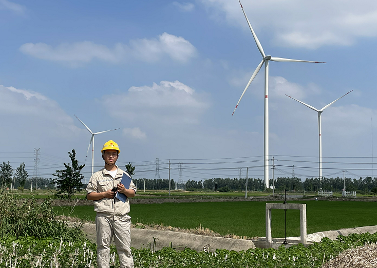 去年夏天,我离开校园,走进射阳风电场,看三枚叶片在蓝天与白云间缓慢而有力地挥舞,脑海中突然闪过一句话:留下“绿水青山”,带来“金山银山”——是的,我成了一名电力人,从此不再是远观风车的游人。