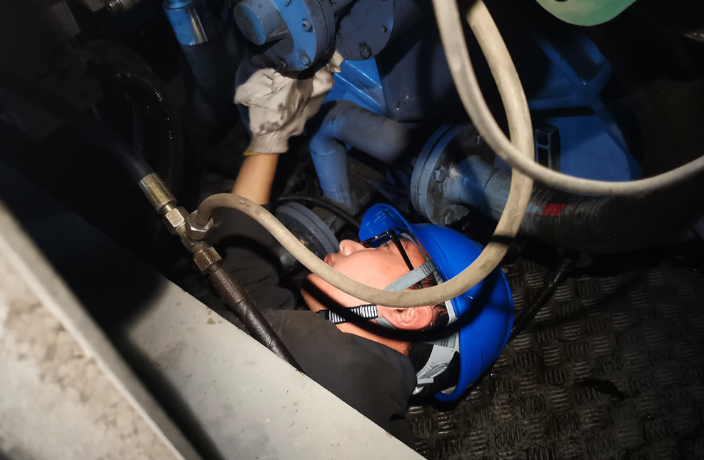 现场人员在检查齿轮箱(庞延堃/摄)