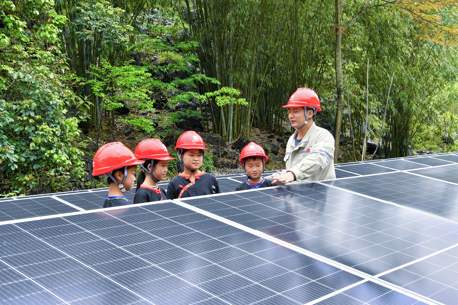 李云给学生们介绍光伏设备