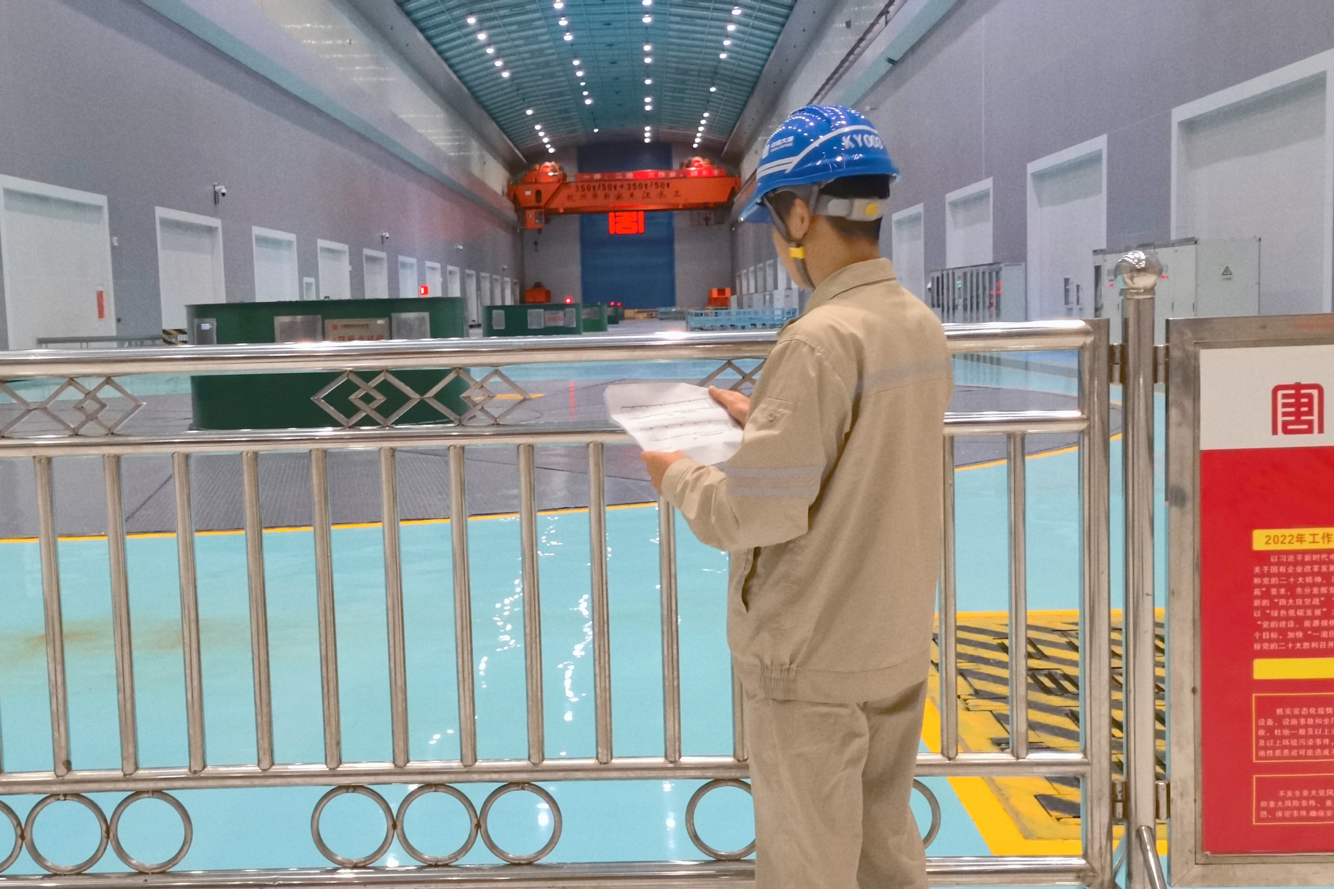 项目组成员岳兰成手拿资料、身背书包,从地上办公大楼奔波地下厂房,仔细勘察每一处细节,铺开“数实融合”的思索与实践。
