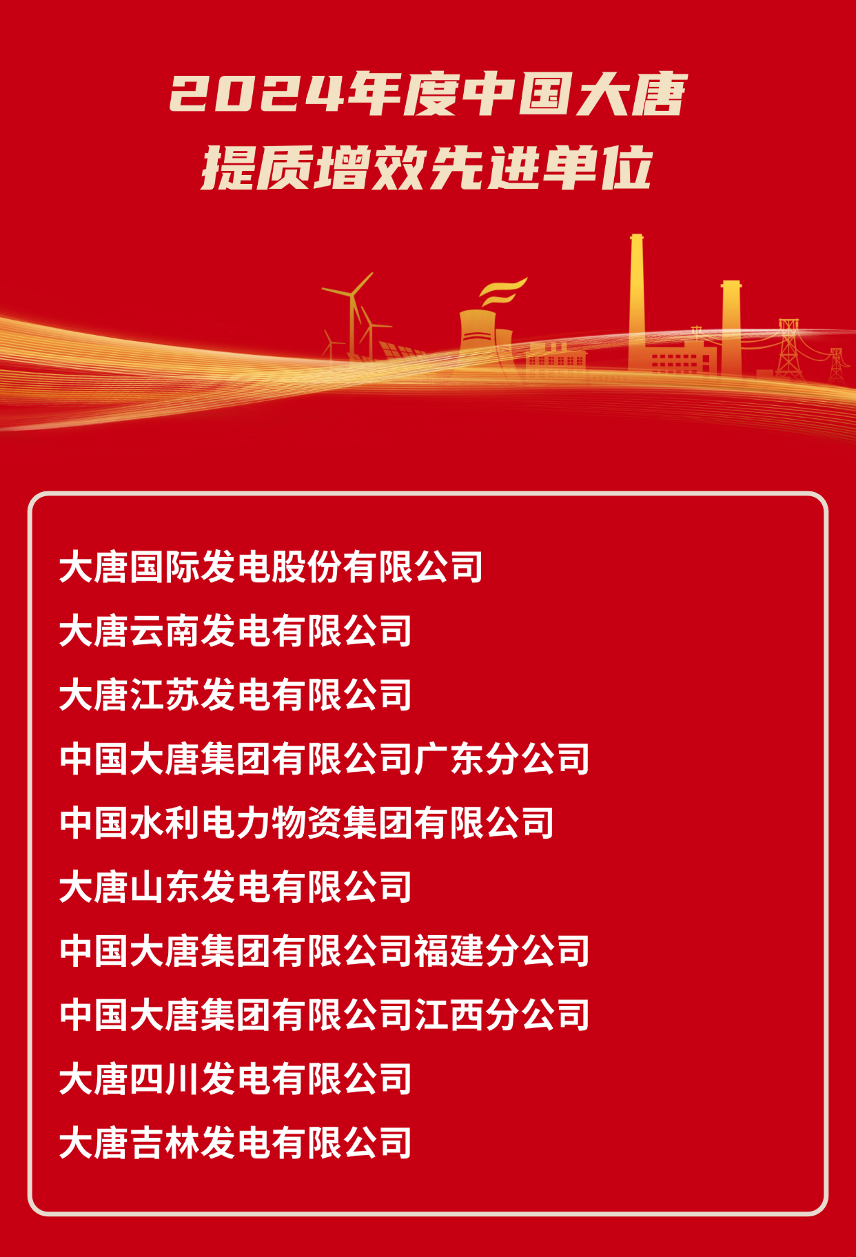 2024年度中国大唐集团有限公司提质增效先进单位