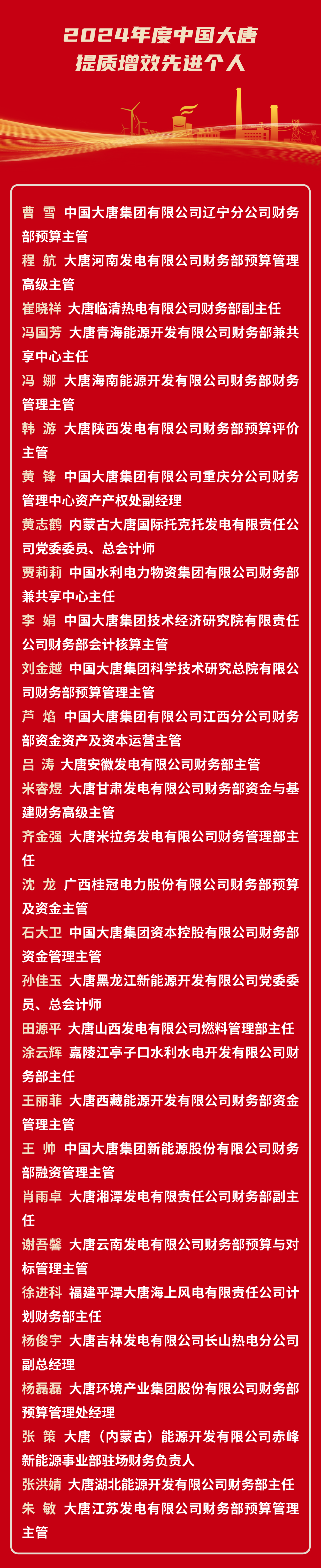 2024年度中国大唐集团有限公司提质增效先进个人
